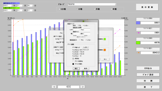 柔軟な設定によりエネルギーデータと生産データに限らず、他データの比較グラフとして使用可能です。